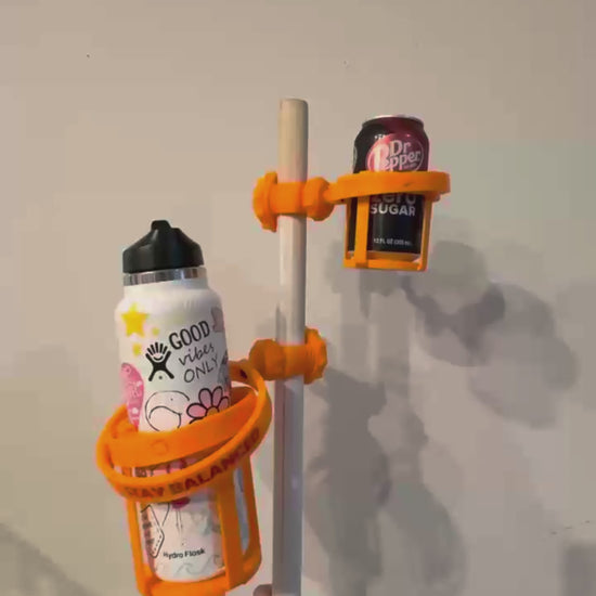 Keep your beverages secure and upright with our innovative gyroscopic cup holder. Engineered with UV-resistant material, it's built to withstand outdoor conditions while maintaining a stable grip on cups, cans, and bottles. Perfect for strollers, walkers, or any on-the-go lifestyle, this holder keeps your drink accessible without spills. Available in Small (ideal for standard soda cans) and Large (fits 40 oz HydroFlasks). We're here to support your needs with custom color and size options—just reach out to discuss what works best for you.