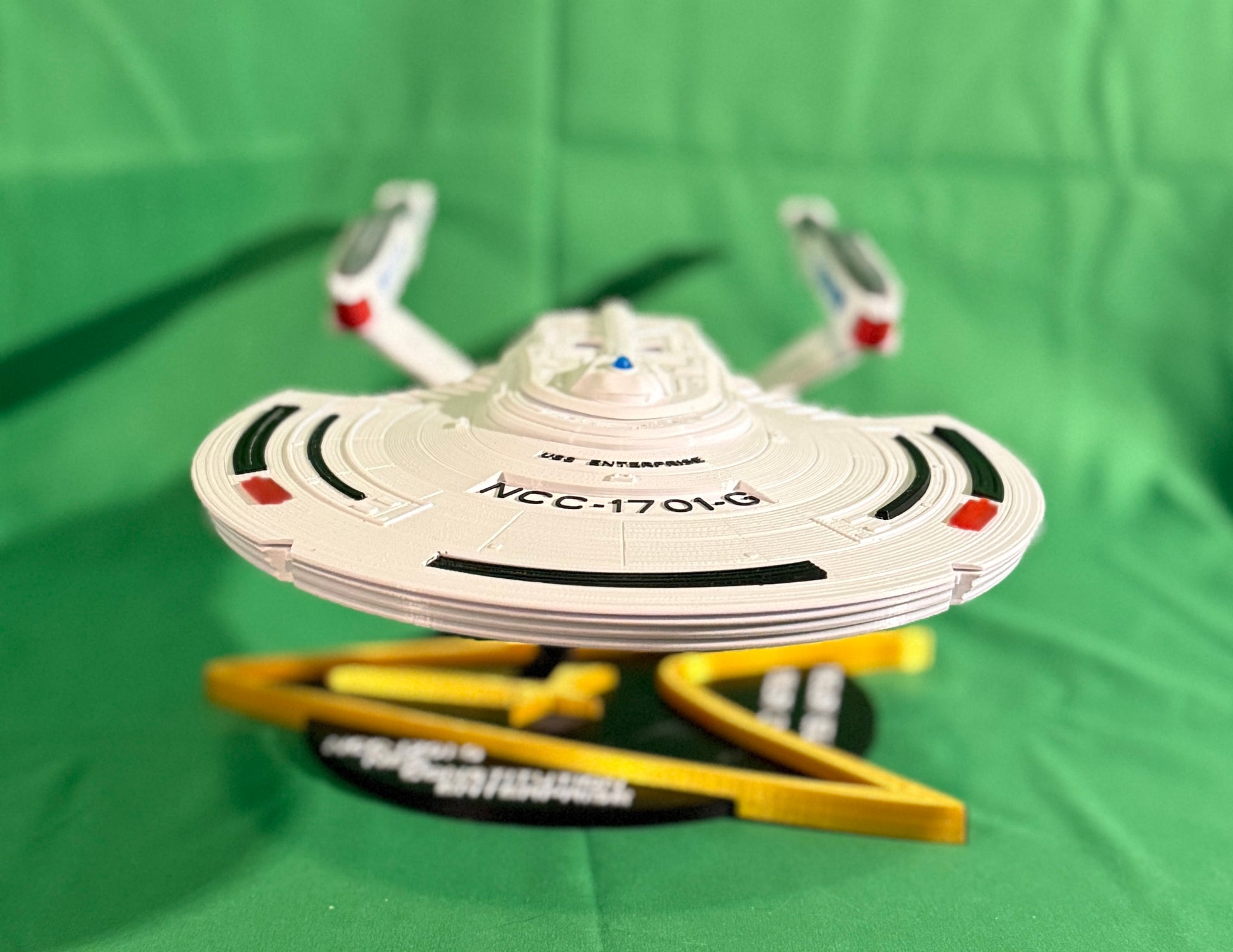 High Contrast Markings: The white "NCC-1701-G" registry ensures the ship's identity is unmistakable, even in stealth mode.